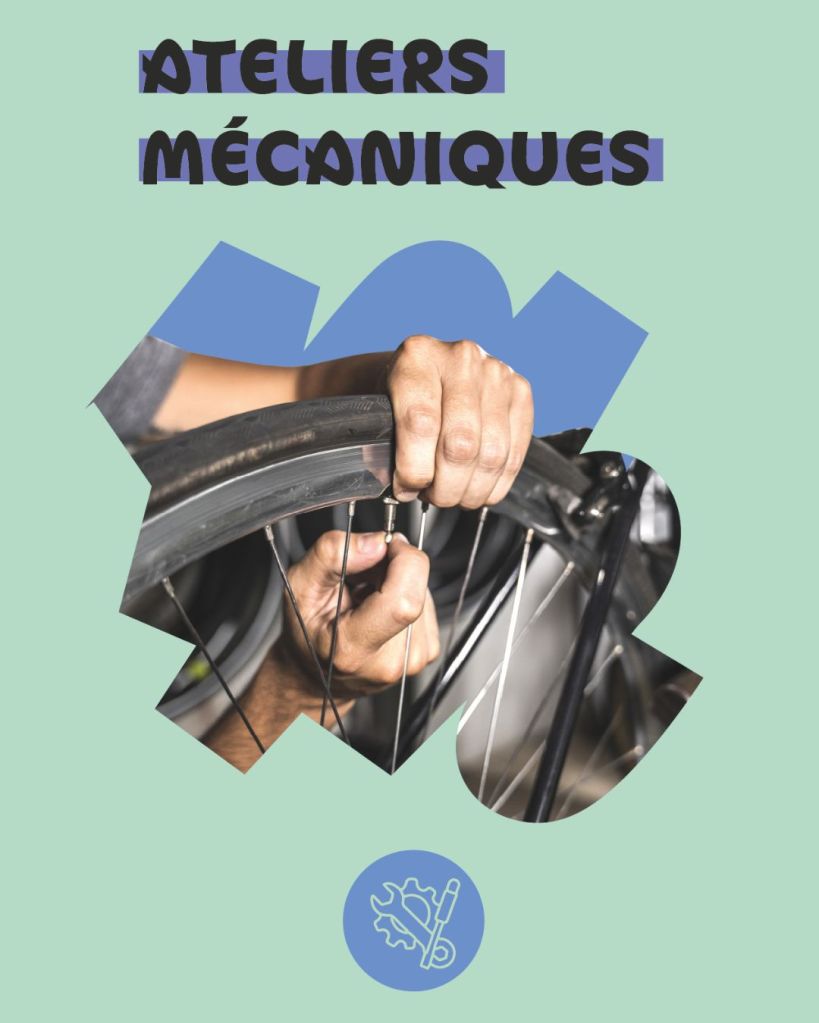 Des ateliers collectifs d’auto-réparation pour que la mécanique de base ne soit plus un frein à la pratique du vélo : gonfler ses pneus, vérifier l’état de son vélo, réparer une crevaison, entretenir sa chaîne…